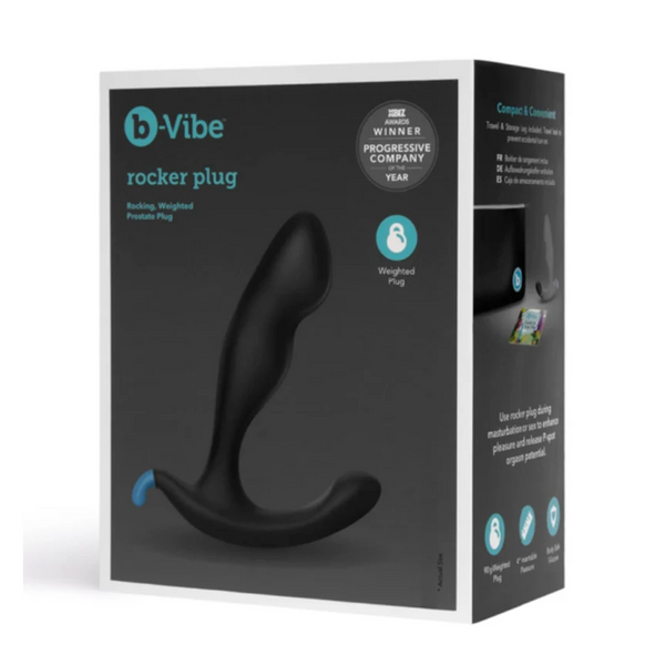 Rock 'n rotate with the b-Vibe Rocker Plug. This ergonomic P-spot plug provides the pleasure of pressure directly to the prostate. With a smooth, flared base, this plug literally puts you in the driver's seat with directed, weighted stimulation in every rock on the plug. With the angled head for internal massage, the Rocker Plug will send you into full-body sensations that are "totally rock 'n roll".