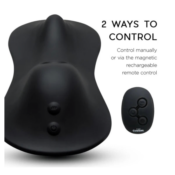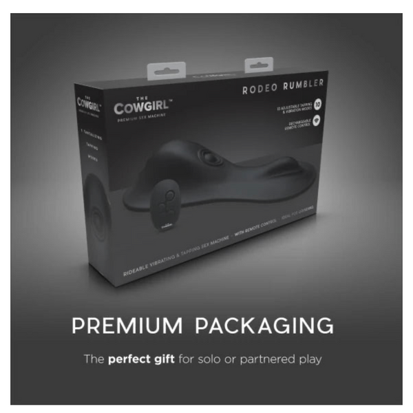Introducing The Cowgirl Rodeo Rumbler, a rideable vibrating and tapping clitoral sex machine. This powerful and discreet device allows for hands-free grinding, enabling users to fully immerse themselves in the experience. The clitoral tapper provides a teasing sensation that delivers deeper satisfaction, transitioning from gentle taps to thrilling bursts.