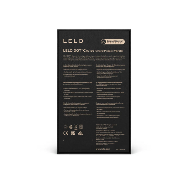 • What is Cruise Control™? Specially developed by LELO, Cruise Control™ means that when LELO DOT™ Cruise is pressed hard against your body, it won't drop its power so that you get a perfectly consistent, hassle-free experience. It's not a setting; it's completely automatic and eliminates the single most common complaint against pleasure products.