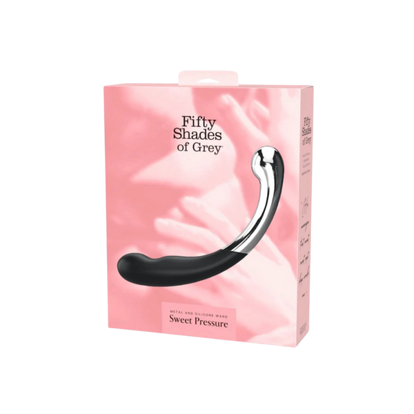 Immerse yourself in the thrilling dual delights of this Fifty Shades of Grey Sweet Pressure Dark Steel and Silicone Double-Ended Dildo. This two-time G-spot focused teaser offers a 5 inch long, solid metal end with a bulbous head that can be used for temperature and weight play.