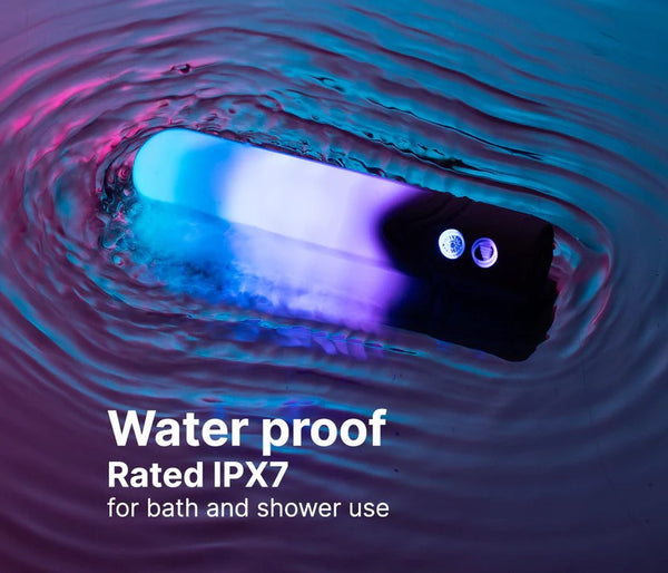 With an IPX7 waterproof rating and rechargeable battery, The Bullet is designed for use in the bath, shower, or spa and includes a stand that doubles as ambient mood lighting.